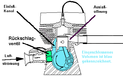 „Brennkammer“ gesogen. Das frische Gemisch verdrängt